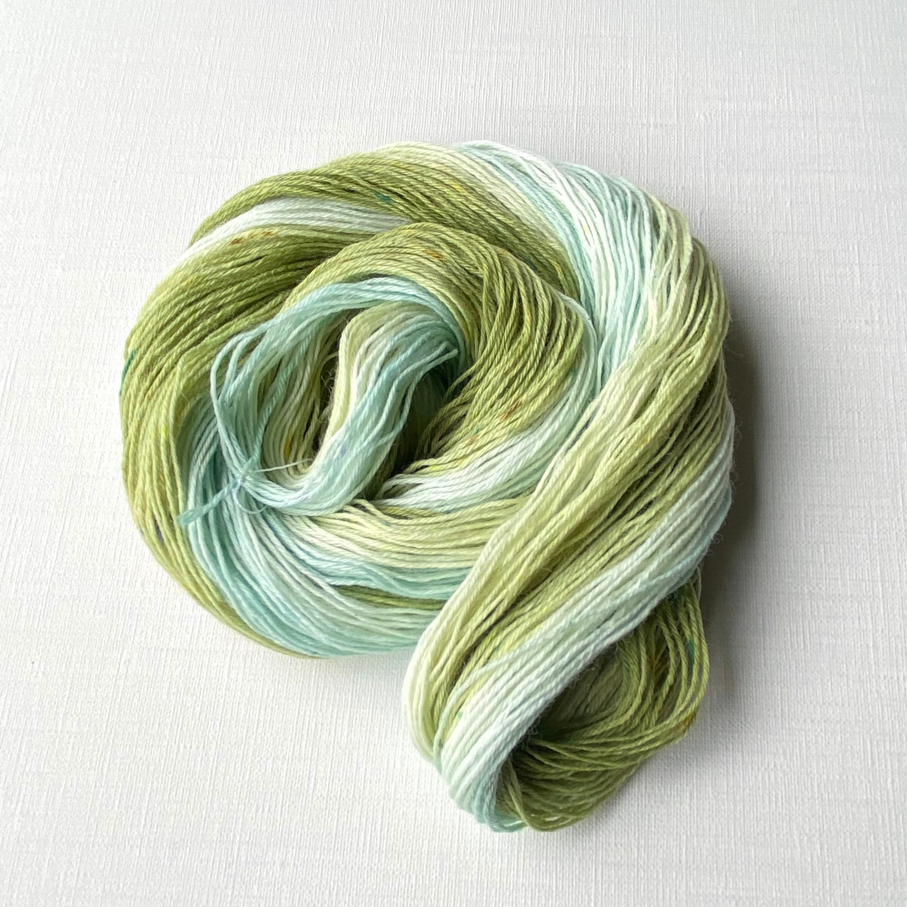 靴下など2つで1組のものを編む為に染めた中央反転染めです。