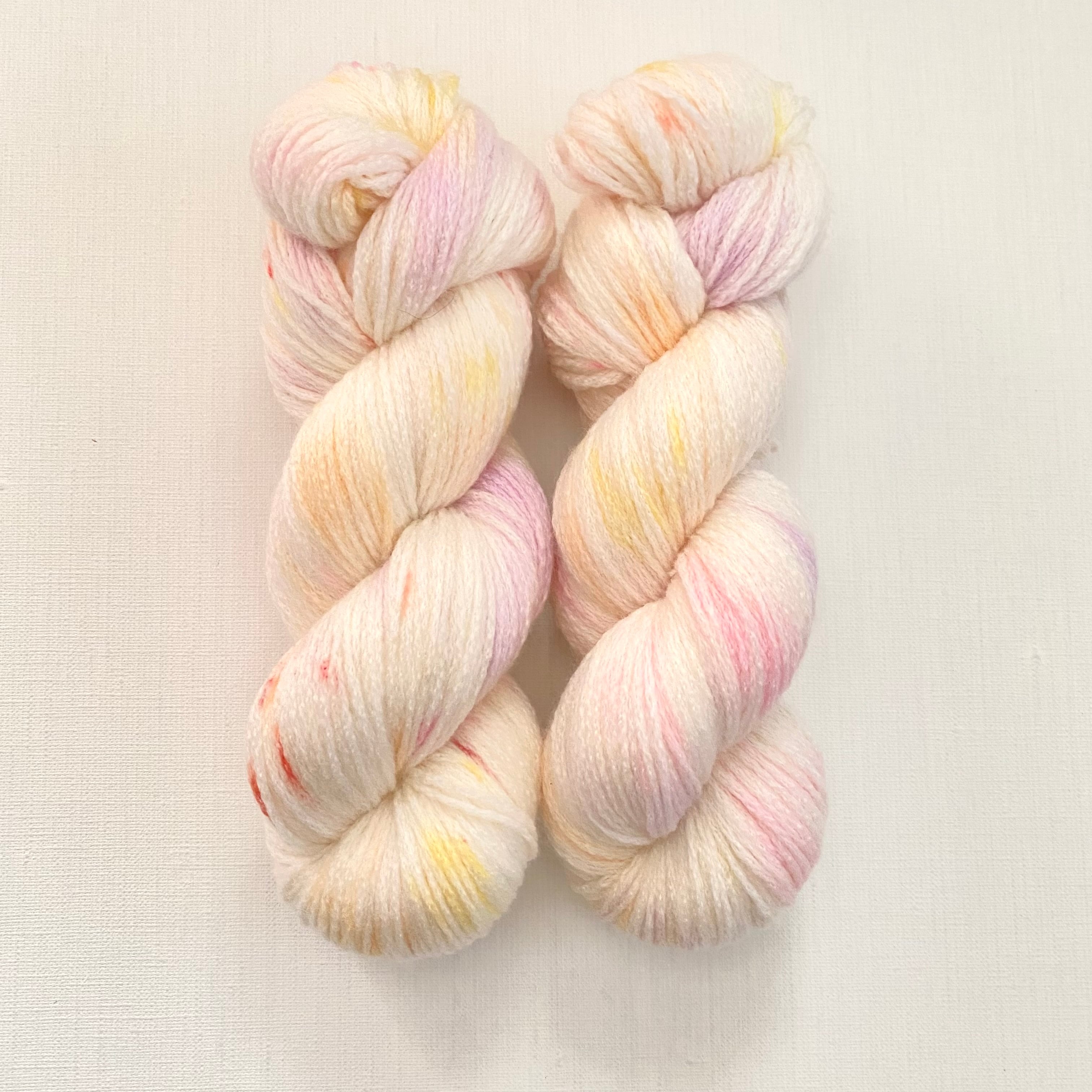素材糸のchainetteヤーンは一般的な撚りで作られた糸ではなく、リリアン紐のようなチェーン状のソックヤーンです。