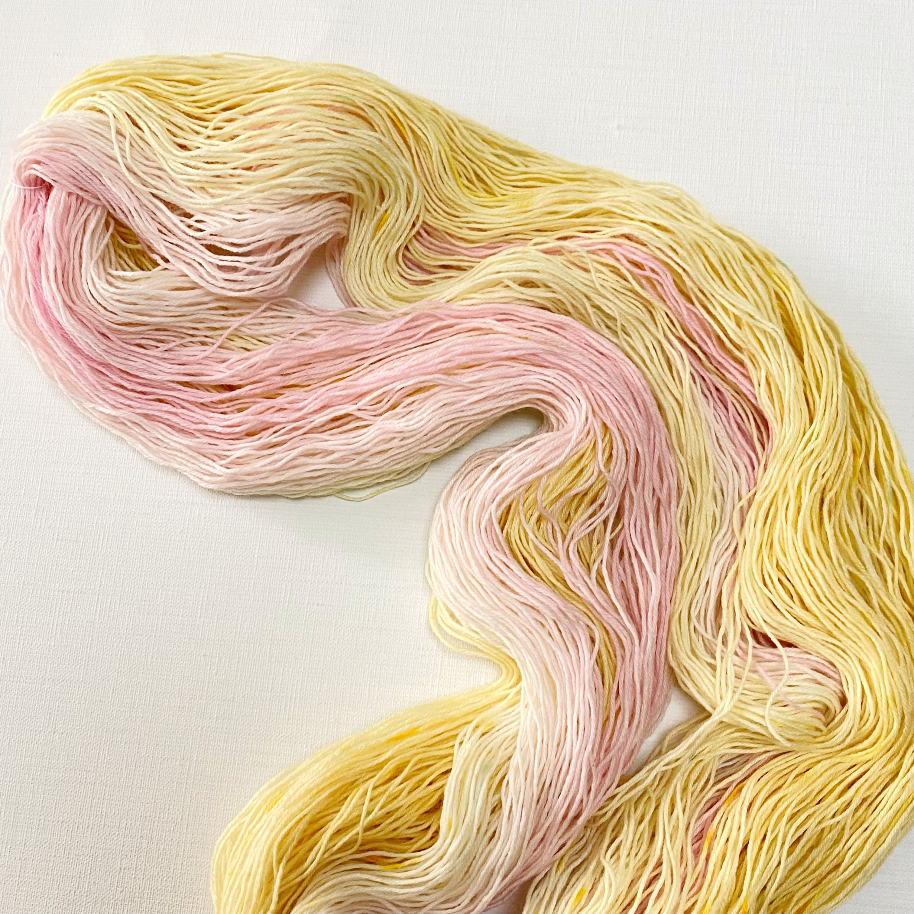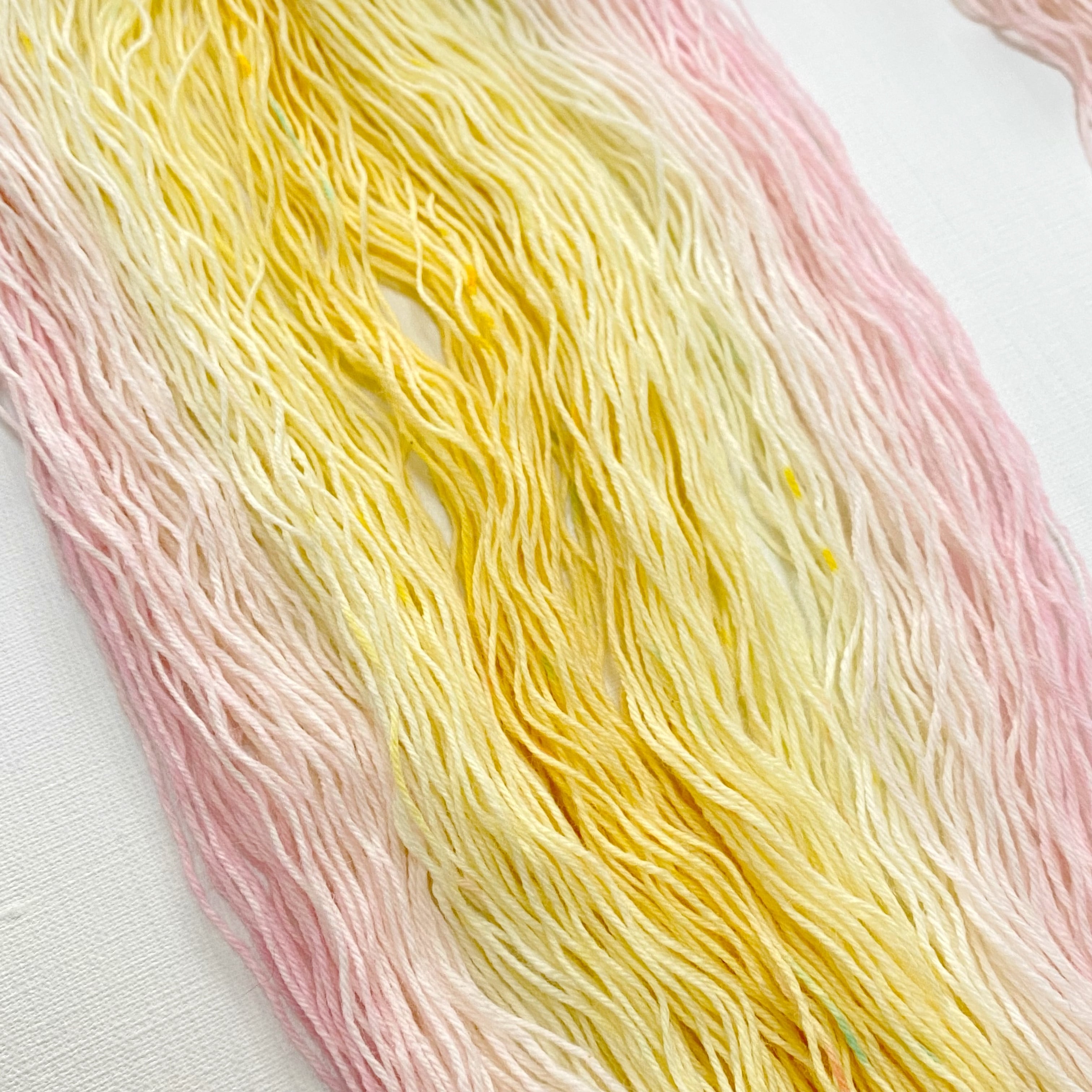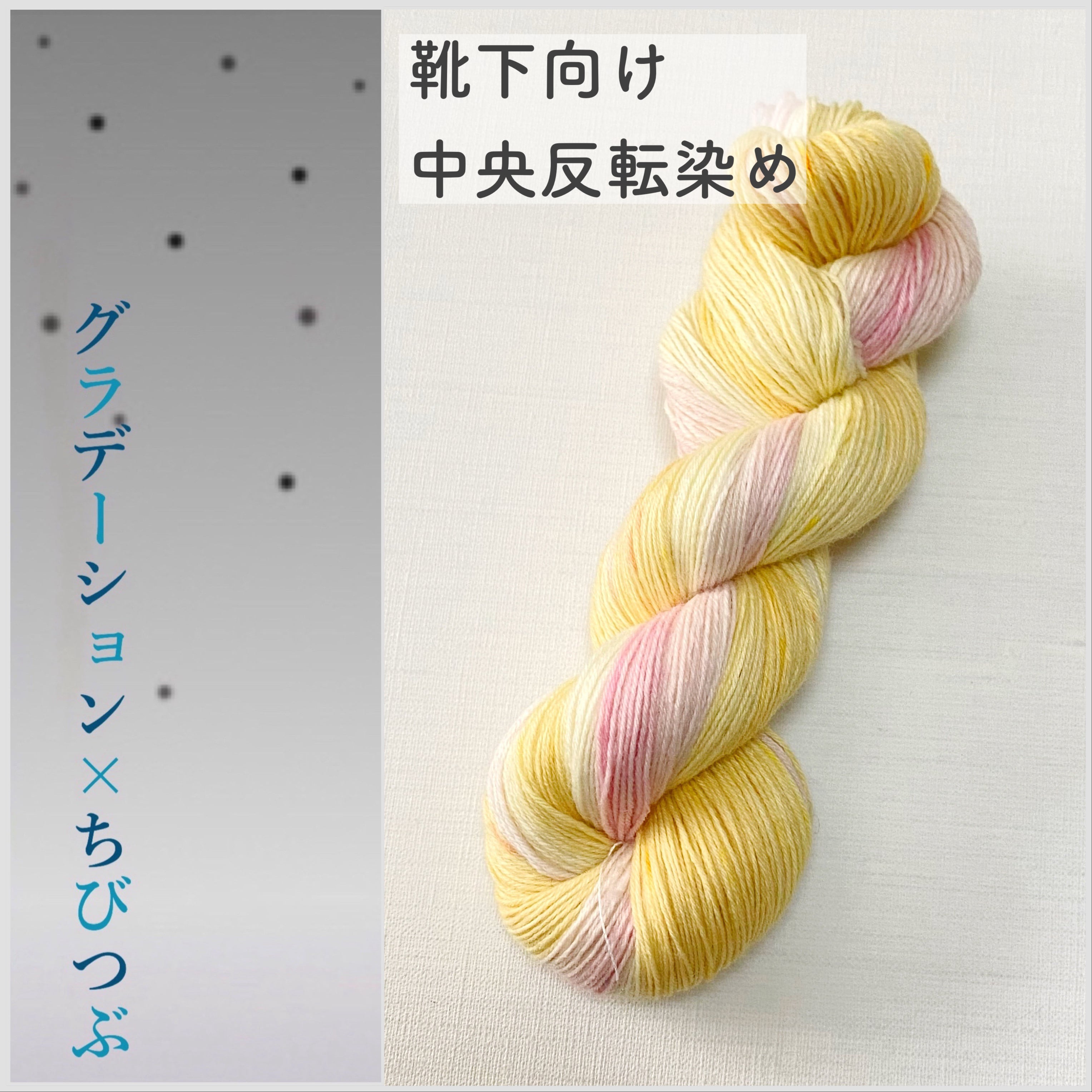 靴下など2つで1組のものを同じような色変化で編む為に染めた中央反転染めです。